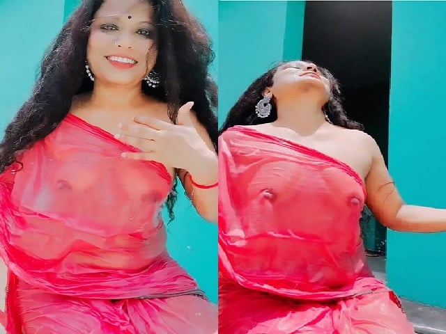 A hot bhabhi see through saree has revealed her sexy boobs in this viral FSI nude video! She looks hot and sexy! Her body shape looked tempting and hot for me. Especially, seeing her boobs in a transparent saree, and her navel excited my mood a lot!