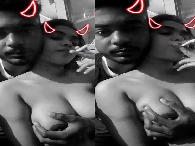 A cute girlfriend smoking cigarette while her boyfriend did the boob press in this selfie video looks hot! Though this video has come in a black-and-white format, the beauty of this girl is still hot! Her big boobs and her cute facial expression kept me engaged in gagging my dick.